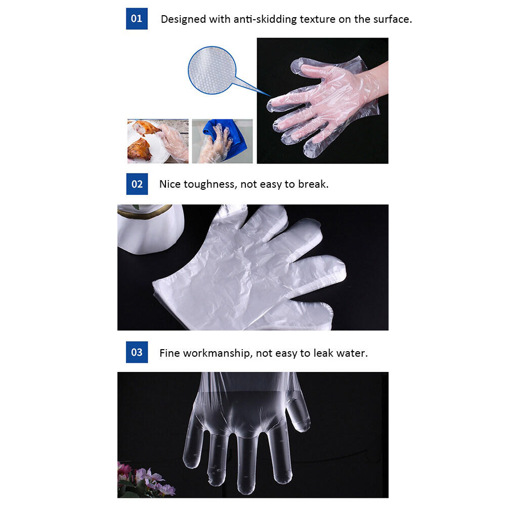 These disposable sloves are very practical and convenient in your daily life. It can effectively help protect your hands from oil, stains and dirt, keeping your hands clean. Transparent and thin design, easy to put on or take off.