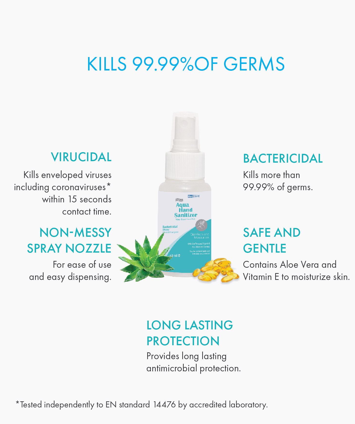Maxshield Aqua Hand Sanitizer (4 x 60ml) Alcohol Free /Kill 99.99% of germs /Suitable for children/ Made in Singapore