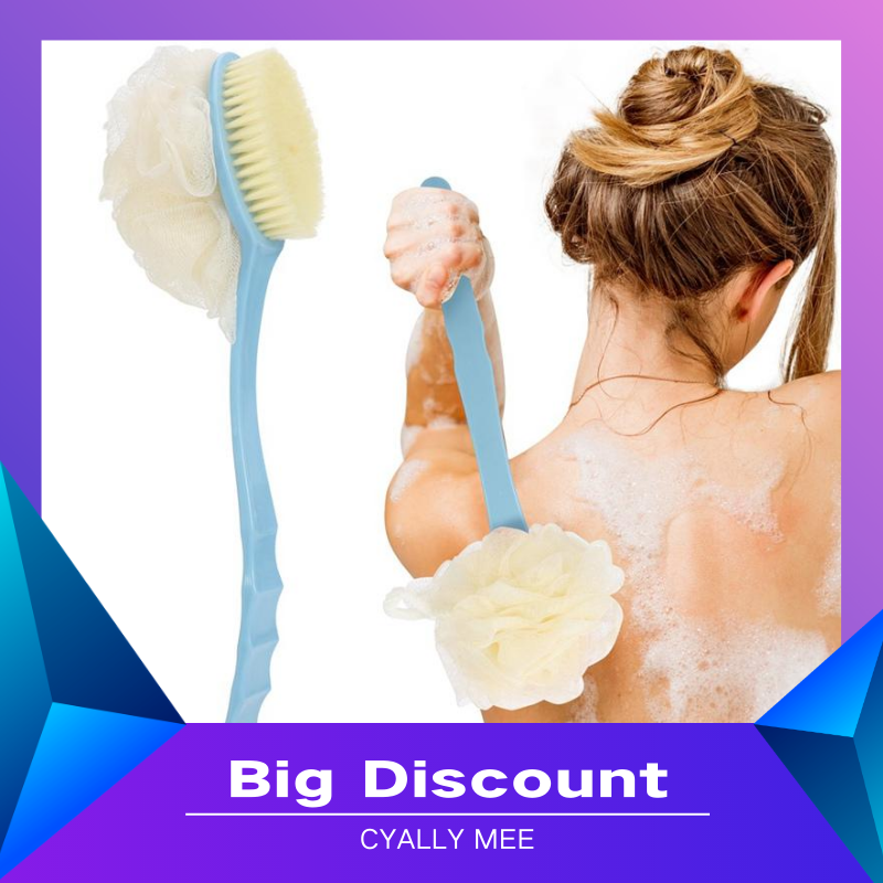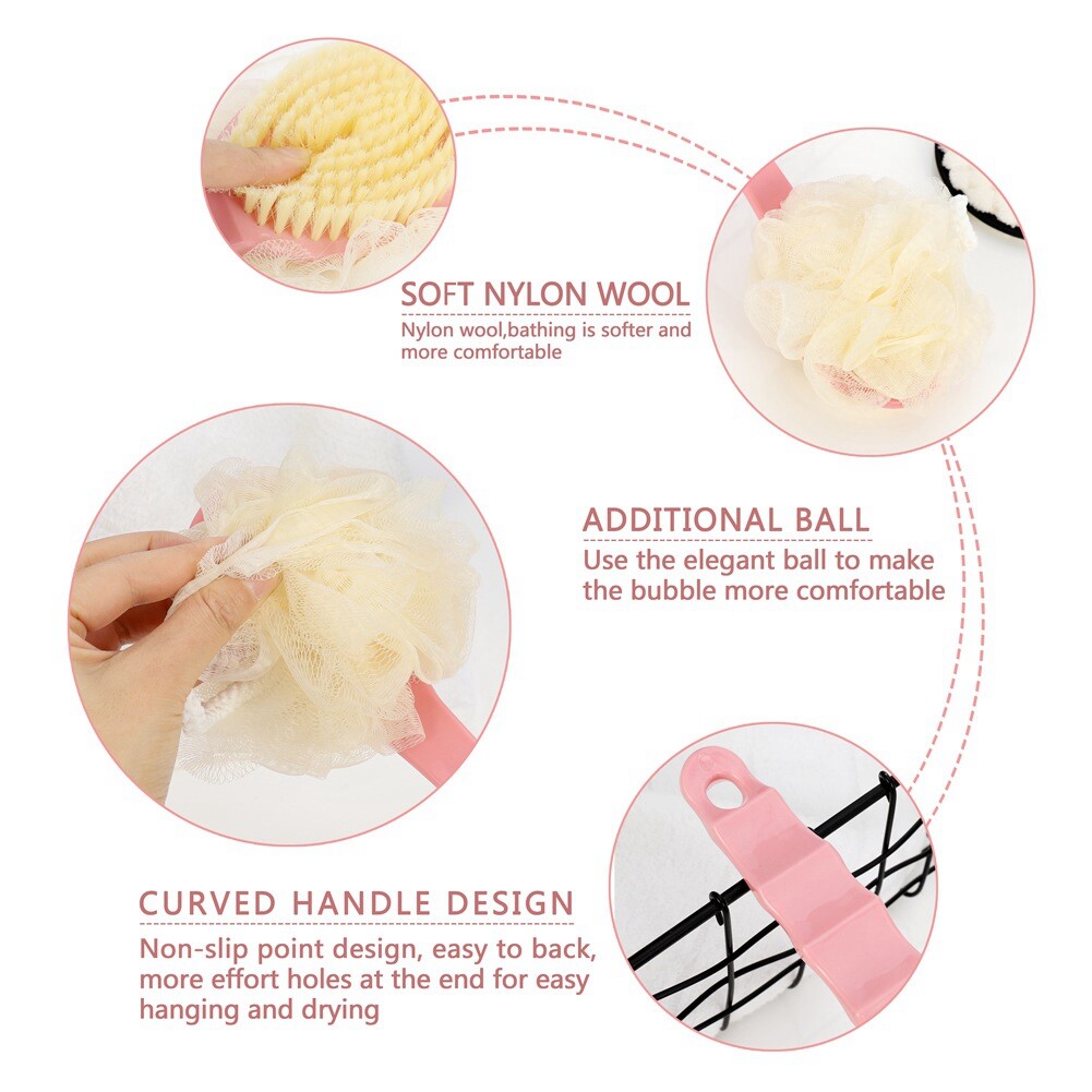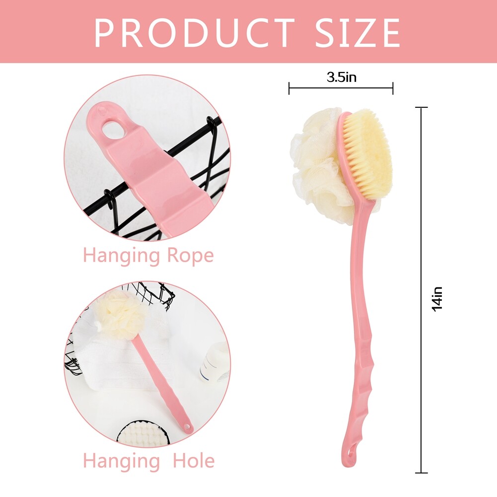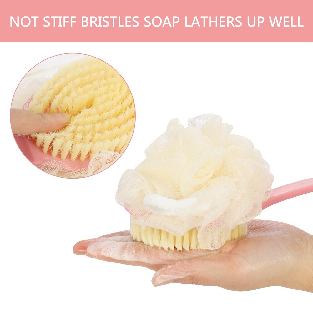 CYALLY MEE Long Handle Soft Hair Bath Brush Sunwuun Back Scrubber Body Brush Loofah Dry Brushing Body Brush With Handle For Shower With Loofah, 2-in-1 Multifunction Bath Brush Mesh Sponge With Curved