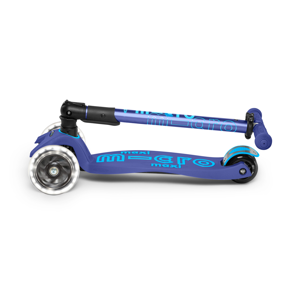 This Maxi Micro from the Deluxe family scores points with two extra features: Firstly, the intuitive folding mechanism ensures that the kickboard can be folded with a simple movement of the hand and stored anywhere. Whether in the boot, under the chair at school or in the locker - there is always room for the Maxi Micro Deluxe Foldable LED. Secondly, the sparkling LED wheels make sure that you can see the kids from a distance, even in the dark. The light is generated by a dynamo mechanism. Thanks to the inductive charging process, no batteries are needed. Furthermore, ABEC 9 ball bearings guarantee highest precision and durability. The illuminated wheels not only look cool but also provide more safety.