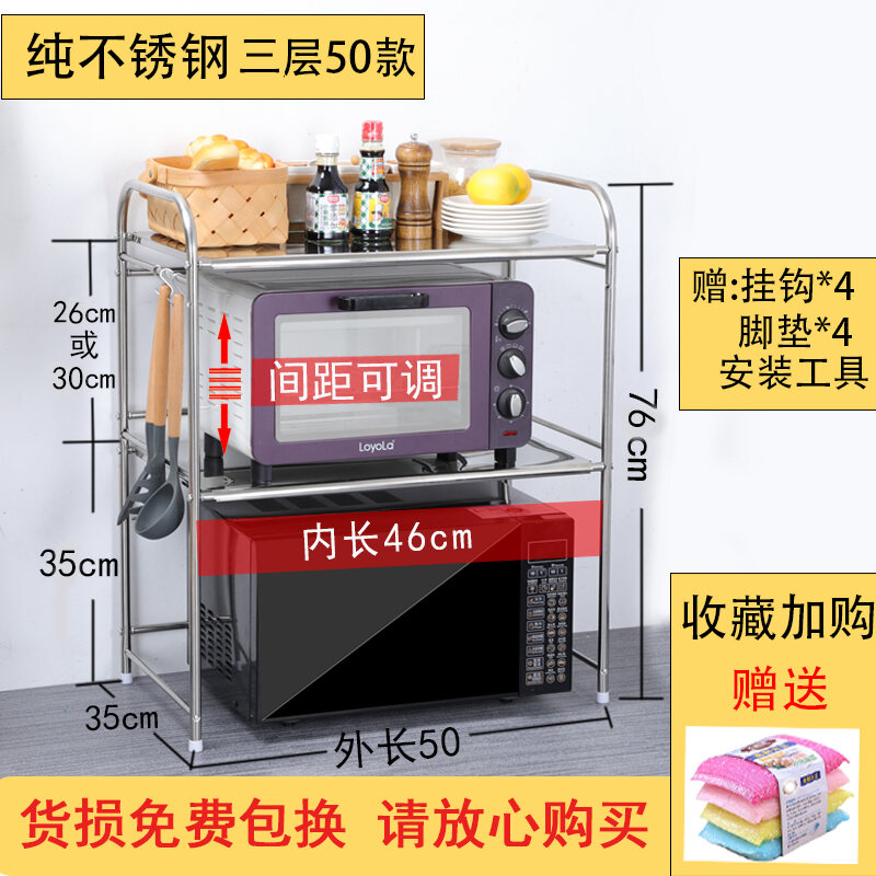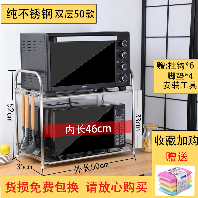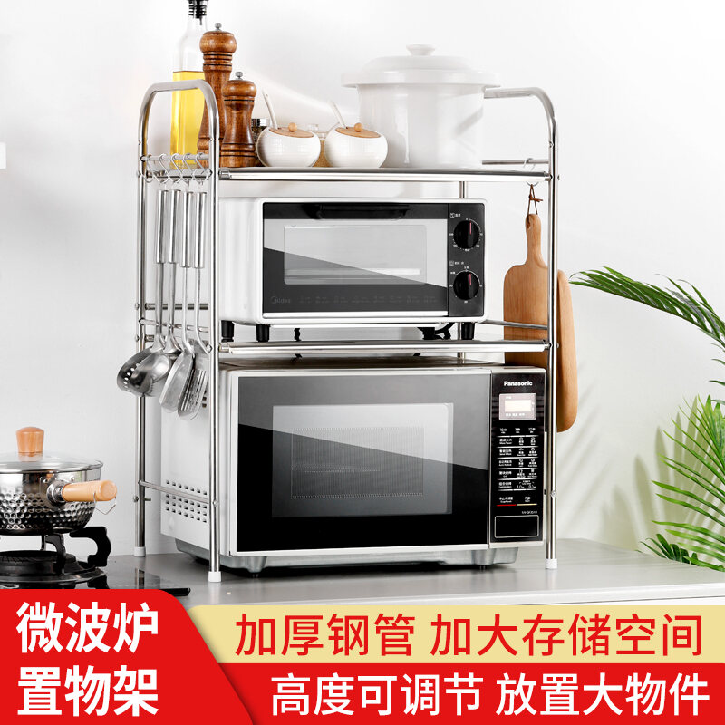 Kitchen Storage Microwave Oven Shelf Stainless Steel Oven Storage Rack Seasoning Rice Cooker Household Table Desktop 2 Layers