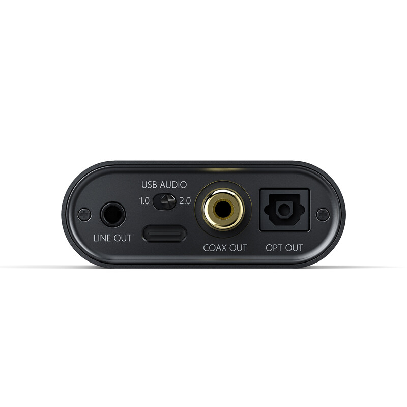 Pocket-sized Power Flexibility Headphone Amplifier & USB-C DAC Coaxial and Optical digital outs 2 USB audio modes PCM384k/DSD256 decoding Dual headphone outputs Dual digital audio outputs ADC volume control