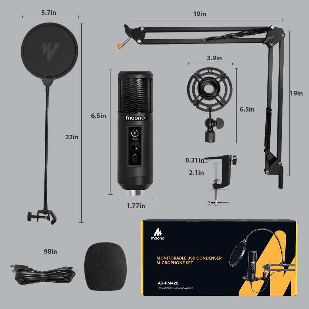 Maono PM422 USB Mircophone Zero Latency Monitoring Cardioid Condenser Mic Touch Mute Button, Mic Gain Knob & Earphone Jack for Voice Overs Recording Podcasting YouTube Karaoke Gaming Live Streaming Vl