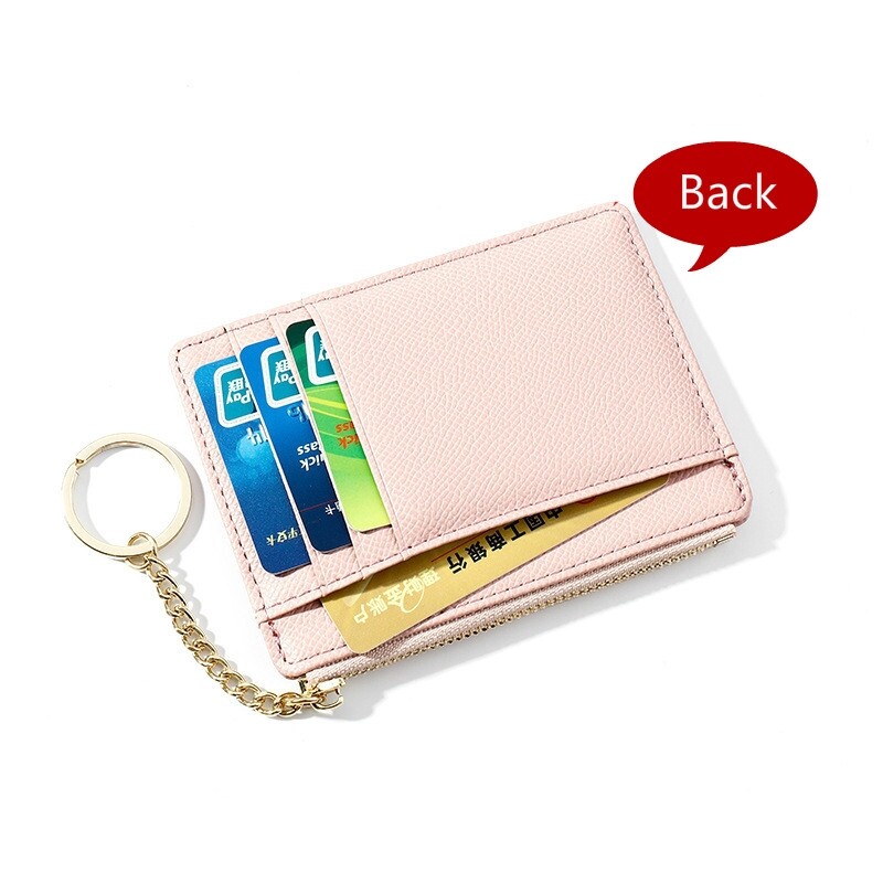 MINGKE Card Holder Wallet Coin Purse for Women 8 Cards Zipper Keychain Mini Simple Fashion
