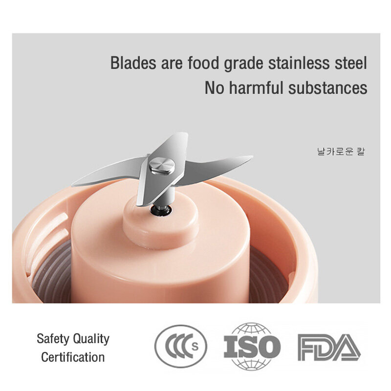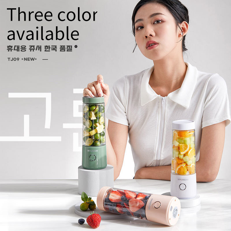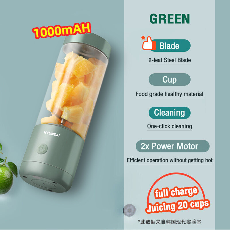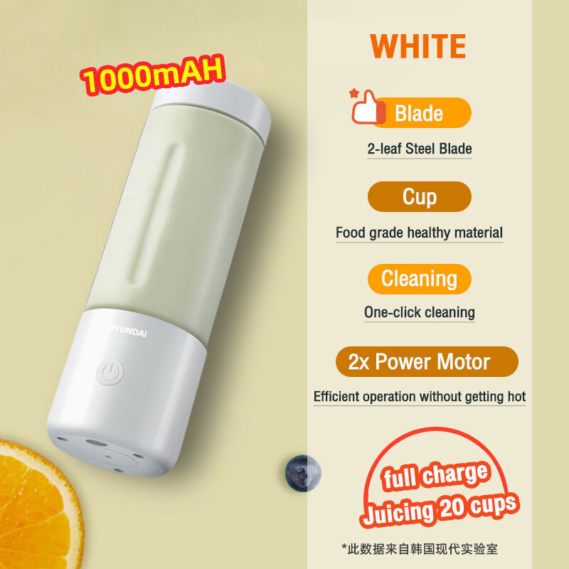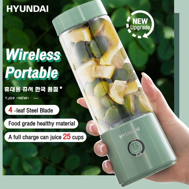-Hyundai 400ML Fruit Blender Juicer Cup 1300mAh 4 Blades Wireless Portable Mini USB Rechargeable Blender Mixer Waterproof