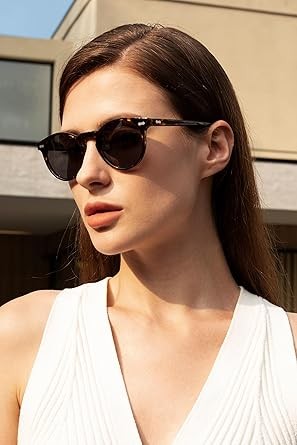 CARFIA Round Acetate Polarized Sunglasses for Women with Small Face and UV Protection (with Leather Case) CA5288