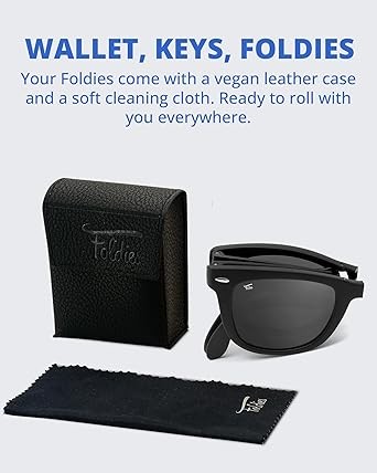• Vegan Leather Case and Microfiber Cleaning Cloth - Foldies sunglasses come with a stylish vegan leather case with a soft velvet interior. The compact case is easy to carry so you can take it with you. The included microfiber cleaning cloth is designed to gently remove fingerprints, dust, and watermarks, keeping your lenses crystal clear.