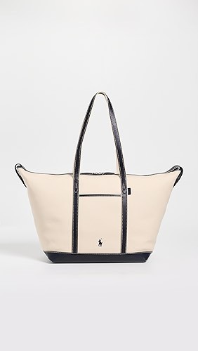 Leather Trim Canvas Large Shopper Tote