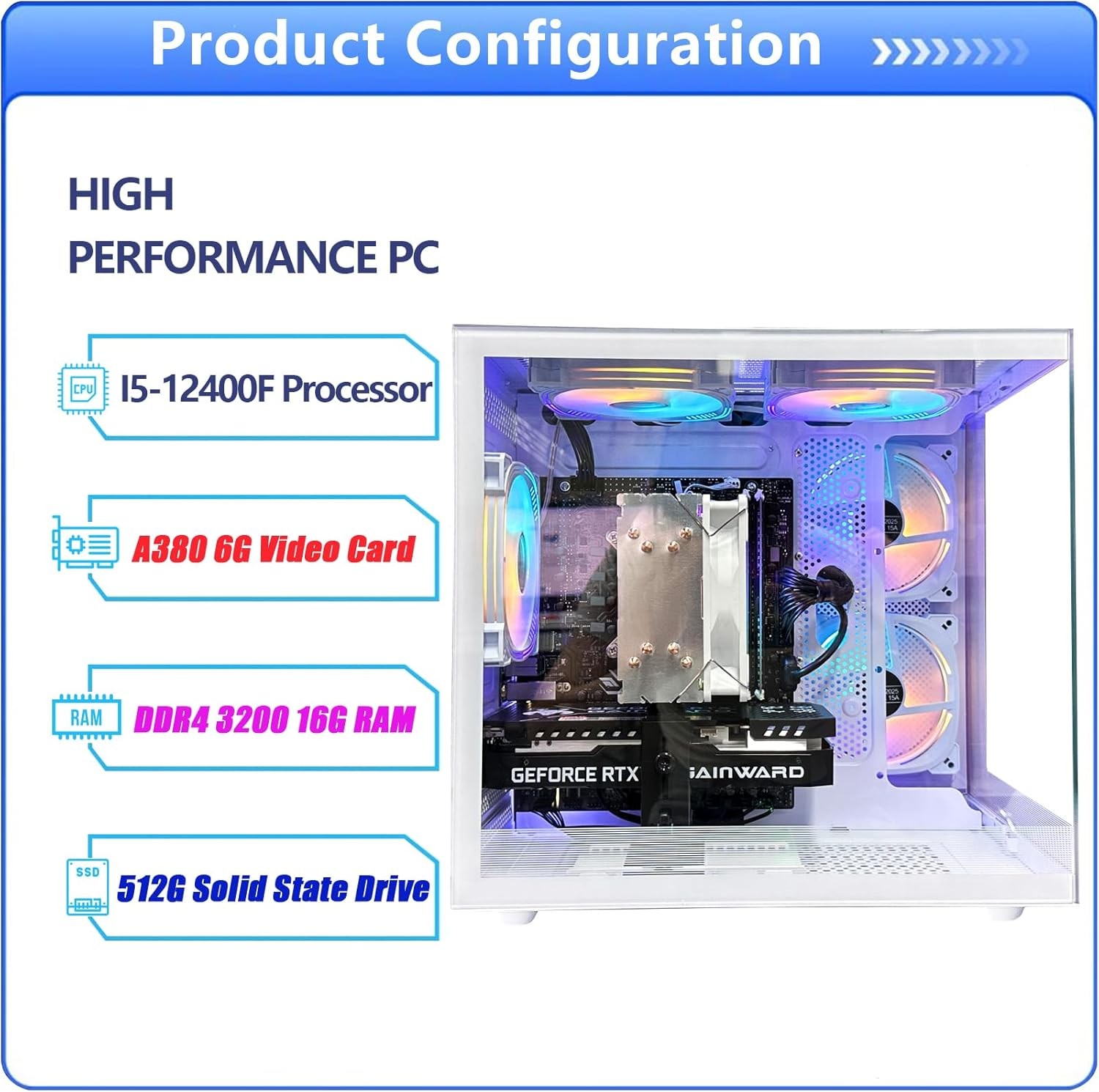 PreBuilt Gaming PC AMD Ryzen7 8700F(8Core 16Threads Up to 5.0G) | 32G DDR5 RAM | Nvme 1TB SSD | RTX 4060 8G | WiFi 6 Desktop Computers White