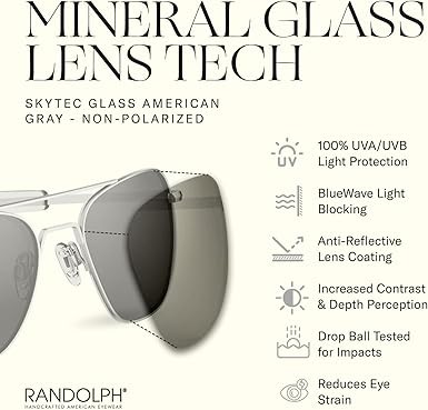 HANDMADE IN THE USA EYEWEAR: At Randolph, we meticulously craft premium eyewear with attention to detail and an unwavering commitment to quality. Family owned and operated since 1973, our durable and comfortable products are designed and manufactured in Randolph, Massachusetts to stand the test of time.