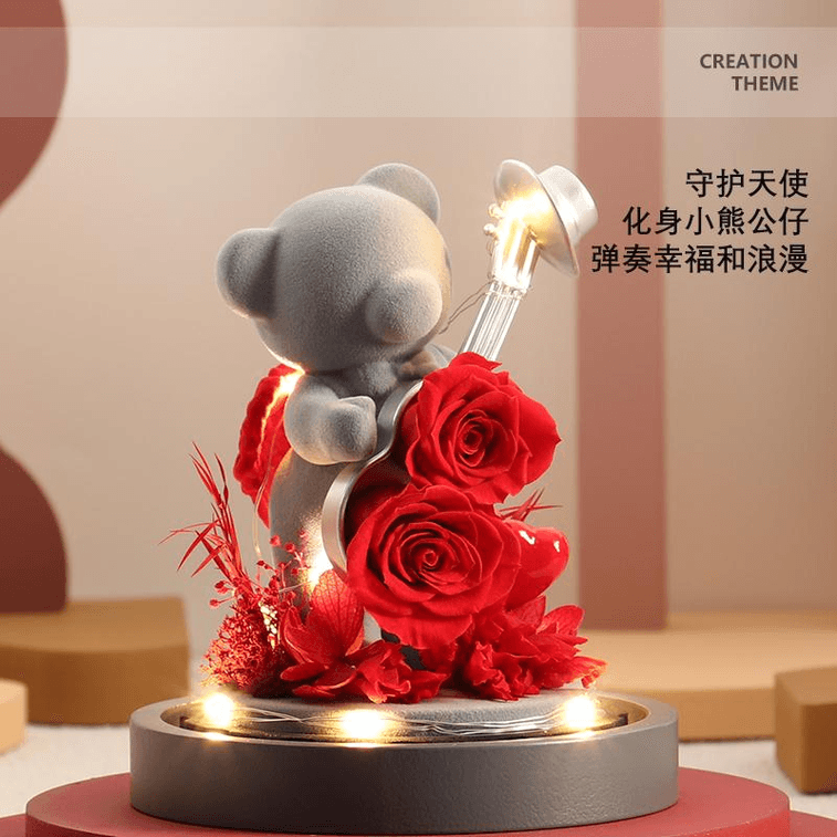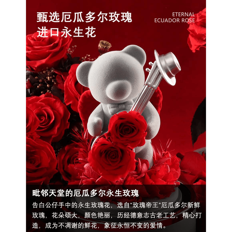 Rosekiss Eternal Flower Rose Romantic Guardian Bear Valentine Gift New Year Gift 12*17cm*1 Box
