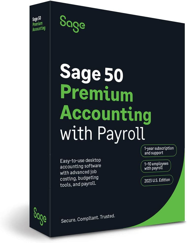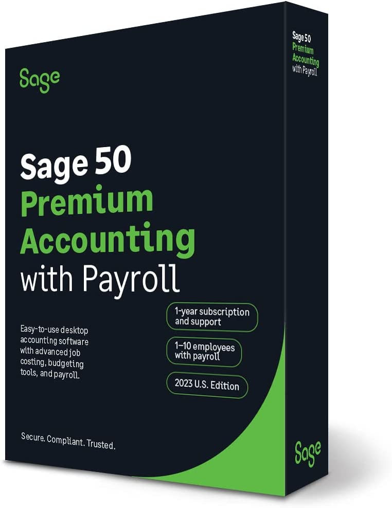 Sage 50 Premium Accounting 2023 U.S. with Payroll 1-User 1-Year Subscription Small Business Accounting Software